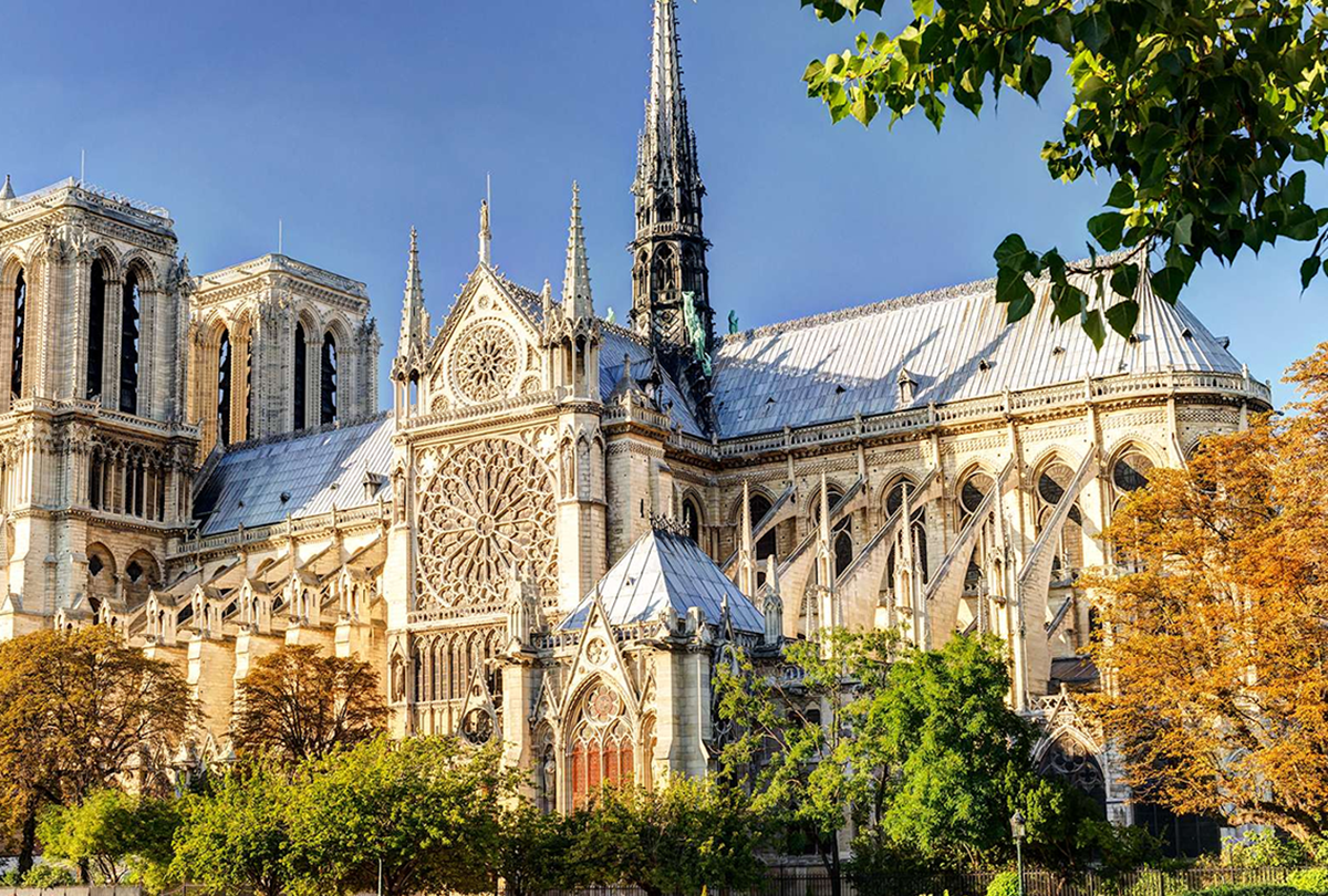 Nhà thờ Đức Bà Paris (Cathédrale Notre-Dame de Paris): một kiệt tác kiến trúc Gothic tráng lệ bên bờ sông Seine. Được xây dựng từ thế kỷ XII, công trình nổi bật với những mái vòm cao vút, cửa sổ hoa hồng khổng lồ, các bức phù điêu và tượng thánh tinh xảo.