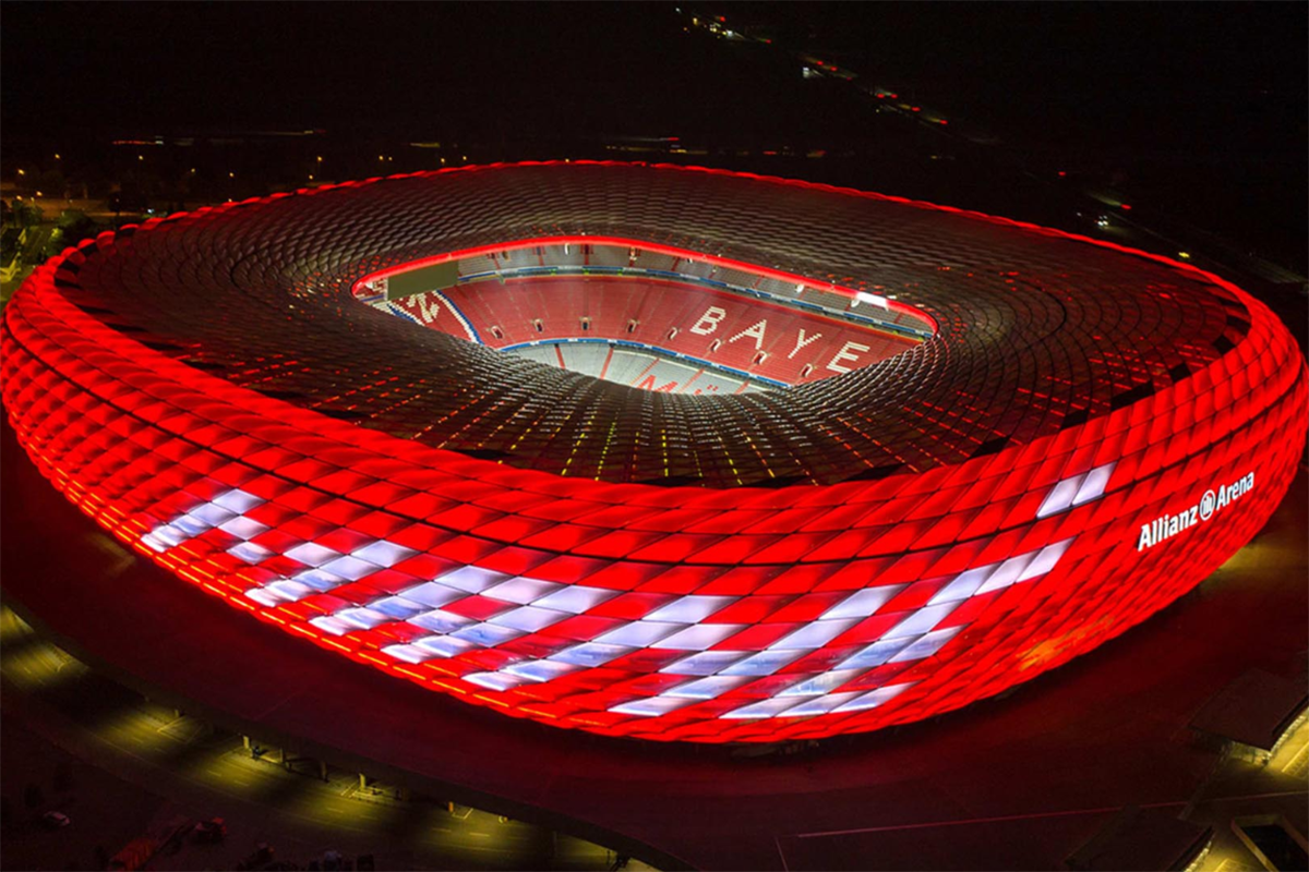Sân vận động Allianz Arena là sân nhà của câu lạc bộ bóng đá FC Bayern Munich và là một trong những sân vận động hiện đại và nổi tiếng nhất thế giới. Sân nổi bật nhờ kiến trúc hiện đại và hệ thống ánh sáng độc đáo có khả năng thay đổi màu sắc theo sự kiện. (tham quan bên ngoài)