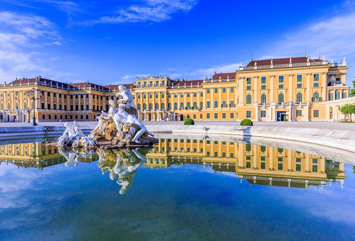 Chiêm ngưỡng Lâu đài Schoenbrunn: một trong những quần thể kiến trúc Baroque đẹp nhất châu Âu và thuộc quyền sở hữu của gia tộc Habsburg từ năm 1569. Vợ của Hoàng đế Ferdinand II, Eleonore von Gonzaga, đã xây dựng một cung điện vui chơi trên địa điểm này vào năm 1642 và gọi nơi này là "Schönbrunn" lần đầu tiên. Quần thể cung điện và vườn được xây dựng từ năm 1696 trở đi sau cuộc bao vây Vienna đã được thiết kế lại hoàn toàn dưới thời Maria Theresa sau năm 1743. Ngày nay, do ý nghĩa lịch sử, bố cục độc đáo và đồ nội thất tráng lệ, cung điện này là Di sản Thế giới của UNESCO.